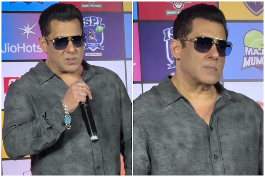 बॉलीवुड सुपरस्टार सलमान खान, जो दिल्ली सुपरहीरोज ISPL टीम के मालिक हैं, मुंबई में हुए ISPL सीज़न 3 प्लेयर ऑक्शन में अपने ट्रेडमार्...