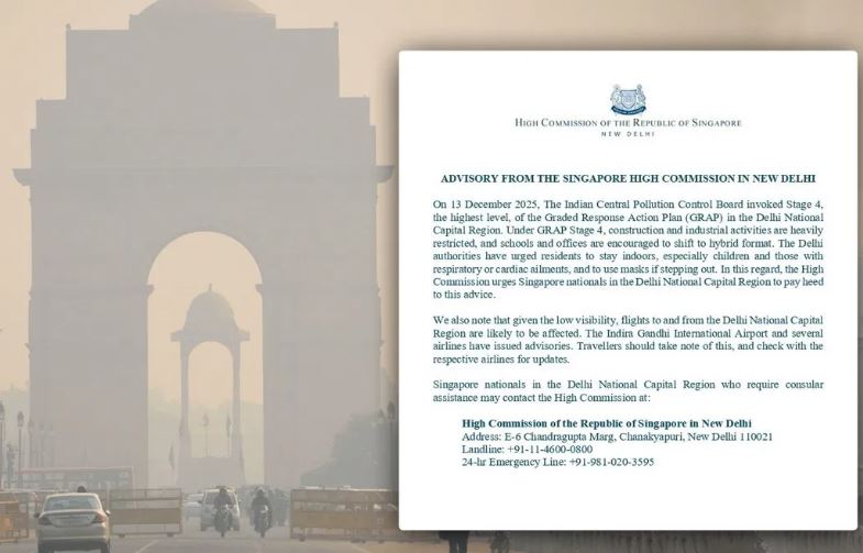 घरों में ही रहें…दिल्ली में खतरनाक प्रदूषण से डरा सिंगापुर, दूताव...